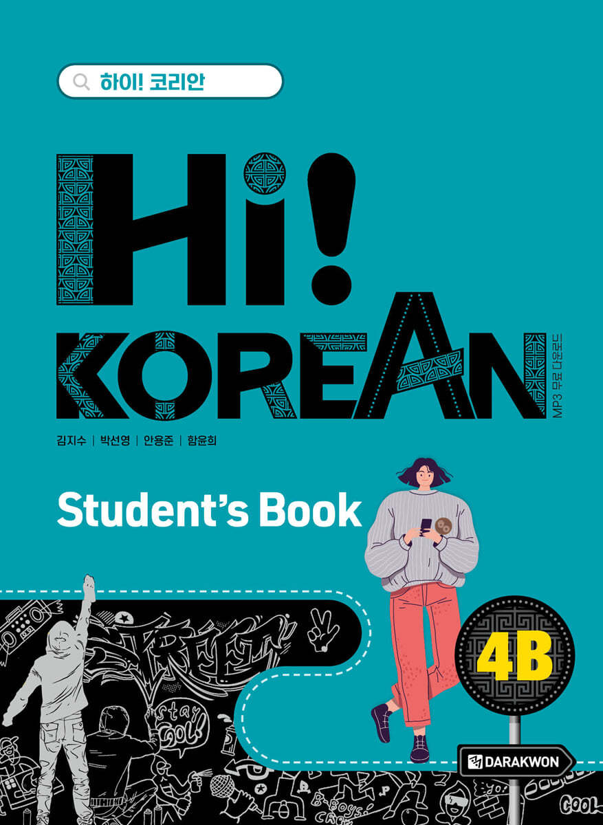 "Hi! Korean 4B" is structured to allow for area-specific learning on topics related to social and economic issues, the Korean language, Korean popular culture, and traditional Korean games. It allows students to progress from simple communication skills to in-depth speaking, listening, reading, and writing activities on diverse topics.