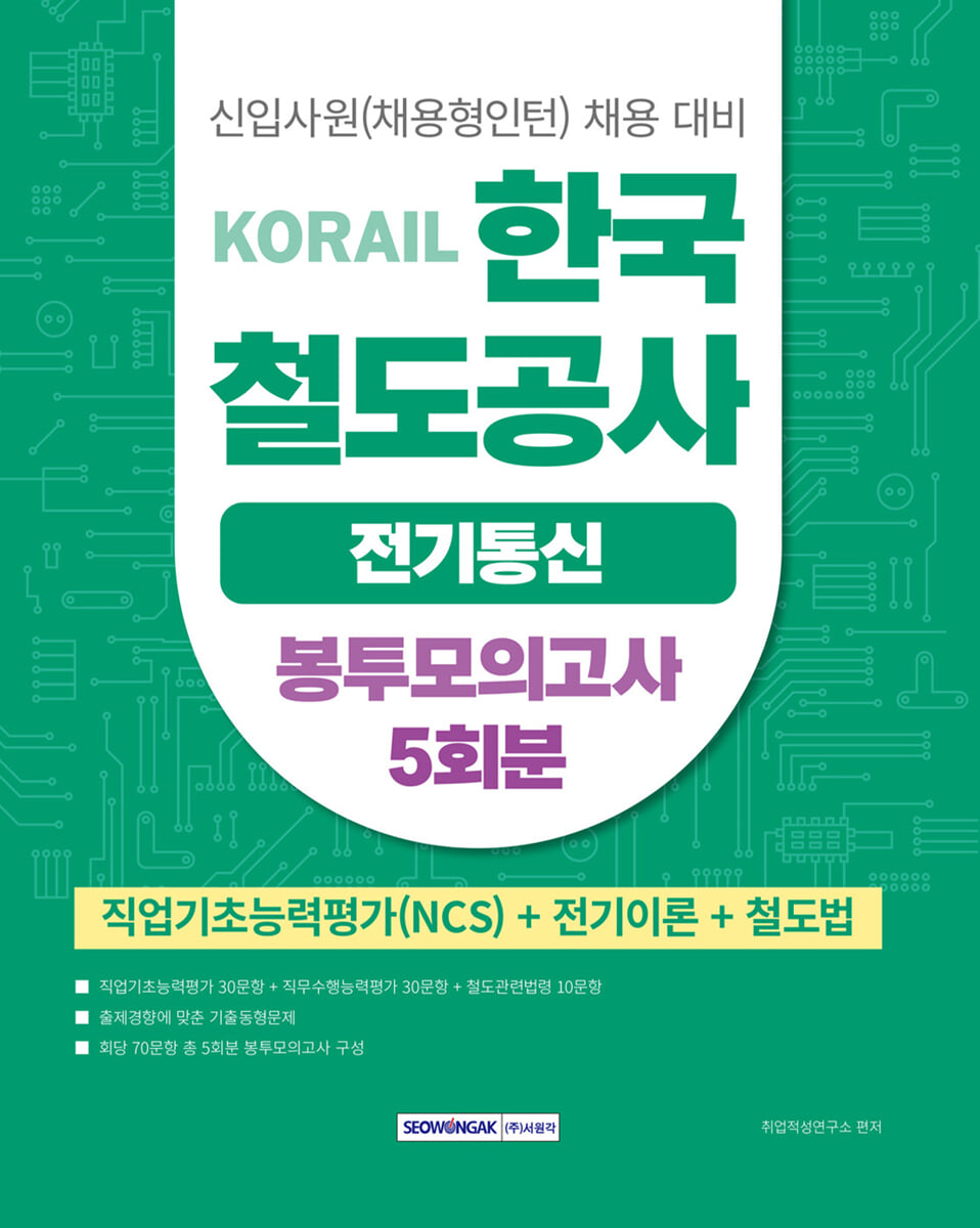 KORAIL Korea Railroad Corporation Telecommunications Envelope Mock Exam 5 times (National Competency Standards Test (NCS) + Electrical Theory + Railway Law)