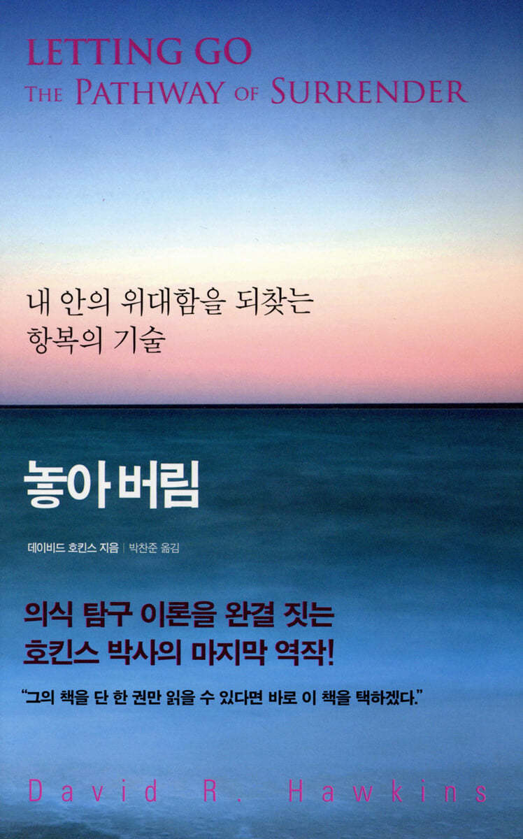 호킨스 박사가 ‘놓아 버림 기법’, ‘항복 기제’라 명명한 이 기술은 우리의 의식 수준을 상위 단계로 끌어올려 결국은 깨달음에 이를 수 있도록 돕는 결정적 도구다.