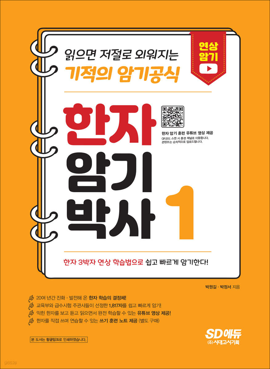 | 한자 학습의 정도, [한자암기박사1]이 새롭게 출간되었습니다. ‘읽으면 저절로 외워지는 기적의 학습법’이라 불리는 ‘한자 3박자 연상 학습법’을 이용하여 쉽고 재미있게 한자를 익힐 수 있는 도서입니다. 한자마다 생생한 어원 풀이로 한자의 어려움을 해소하였고, 필순, 활용어휘, 그밖에 상세한 설명 등으로 사전이 필요 없을 정도로 많은 정보를 담았습니다. 본서로 학습하면 교육부와 급수시험 주관사들이 선정한 1,817字를 완전 마스터할 수 있으며, 정확하고 풍부한 어휘력을 향상시켜 논술, 한국어 능력시험에도 유용합니다. 또한, 학습 효과를 높이고자 ‘한자 암기 훈련’ 영상을 유튜브에 담고 있으며, 1,817字의 모든 어원이 녹음된 mp3를 제공하고 있기 때문에 어원을 들으며 한자가 저절로 외워지는 기적의 암기 공식을 체험하며 학습할 수 있습니다. |