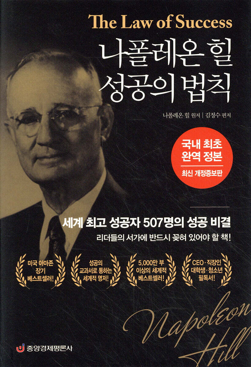 | * 세계 최고 성공자 507명의 성공 비결! * 미국 아마존 장기 베스트셀러! 5,000만 부 이상 판매된 세계적 베스트셀러! * 리더라면 반드시 읽어야 하는 자기계발 분야의 영원한 고전! 한 사회를 이끄는 오피니언 리더라면 반드시 읽어야 하는 책으로 인식되어온 나폴레온 힐의 《The Law of Success(성공의 법칙)》이 개정증보판으로 출간되었다. 이 책은 ‘성공의 법칙’을 단순히 나열하는 데 그치지 않고 한 걸음 더 나아가 성공과 부(富)의 원리를 당신의 문제와 결부시키고 당신의 문제에 깊이 공감하며, 그 같은 문제에 관해 지혜의 신과도 같은 조언을 해줄 수 있는 남다른 능력을 가진 책이다. 더욱이 이번 개정증보판은 나폴레온 힐 전문가인 ‘나폴레온 힐 성공연구원’ 김정수 원장이 원저자가 전하고자 하는 의도를 훼손하지 않는 범위 내에서 현대적인 흐름에 맞게끔 보완하였다. 특히 이 책은 5,000만 부 이상 판매된 세계적 베스트셀러이자 성공철학의 진수를 담은 ‘성공의 교과서’로 통하는 책이다. 또한 전 세계 수많은 사람들을 성공의 길로 이끌었으며, 세계 각지에서 수없이 쏟아져나온 각종 성공지침서, 자기계발서, 처세서 등의 롤모델이 되었다. |