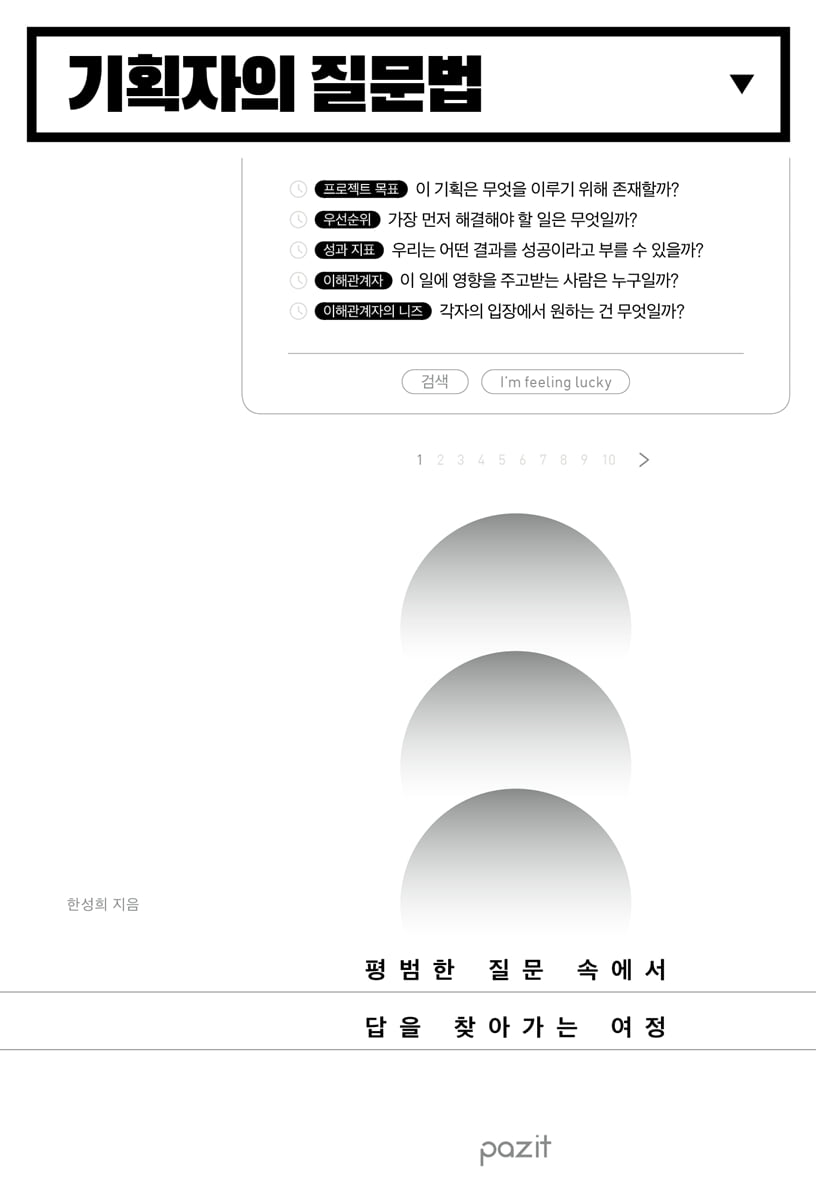 이 책은 질문을 통해 흐름을 바꾸고, 전략을 설계하고, 결과를 이끄는 기획자의 사고 도구 상자를 건네줄 것이다.