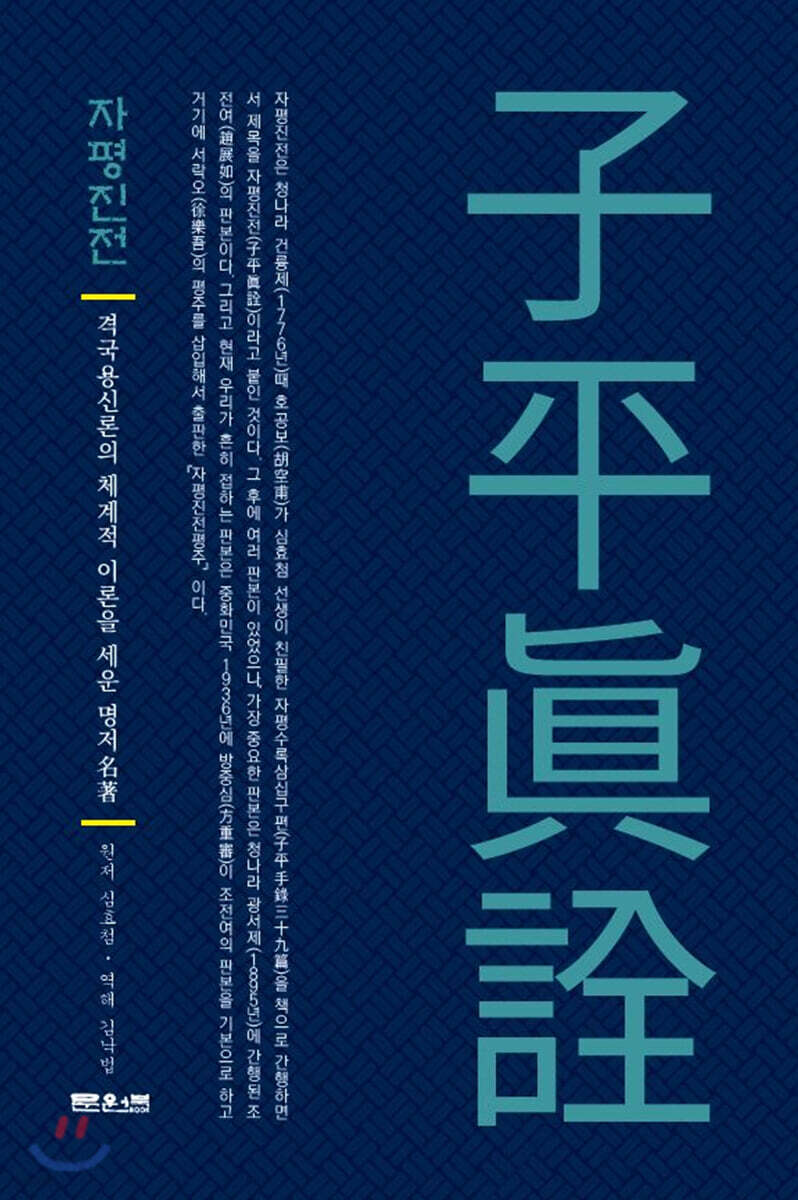 『자평진전(子平眞詮)』은 『궁통보감(窮通寶鑑)』, 『적천수(滴天髓)』와 더불어 역학의 3대 기본서이자 사주 판단을 할 때 가장 기본이 되는 책으로, 명리학을 공부하는 사람이라면 누구나 읽어야 하는 고전이다.