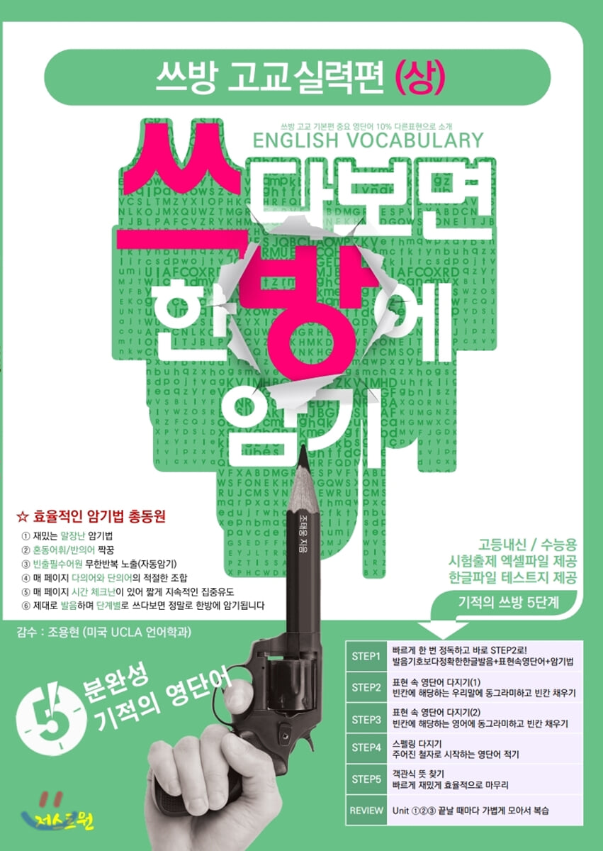 5단계로 쓰다보면 암기되는 표현속 영단어로 8단계 레벨테스트지로 수준에 맞는 단계를 선택할 수 있다.