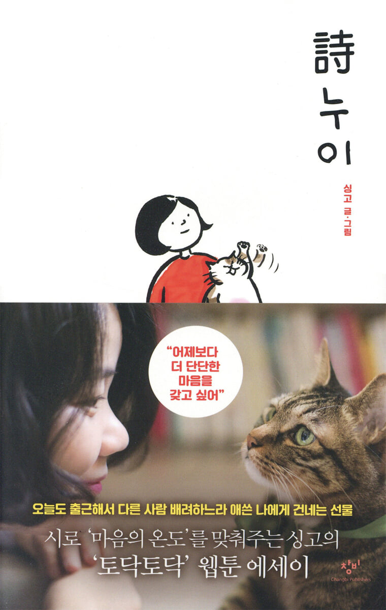 « Je veux avoir un cœur plus fort qu’hier. » L'essai de Shingo sur le webtoon « Pat Pat » qui correspond à la « température du cœur » avec Shiro La poétesse Shin Mina, qui travaillait activement comme poétesse depuis la publication de son premier recueil de poésie, « Called Shingo », en 2014, a un jour distribué des carnets de croquis à ses lecteurs sous le nom de « Singo ». Le carnet de croquis contenait des dessins soignés et charmants, des essais poétiques et un poème. Le webtoon poétique de Shingo, qui dépeint avec tendresse les soucis de la vie quotidienne et les souvenirs d'enfance, a suscité une réaction chaleureuse et de l'empathie de la part des lecteurs, et a suscité une grande anticipation avant même sa publication, puisqu'il a publié en série « Poetry Reading Sister, Poetry Sister » sur le blog Naver de Changbi pendant environ six mois à partir de l'hiver 2015. L'essai en ligne de Shingo, qui commence par la question « Et si nous lisions la poésie d'une manière différente, en dehors des livres papier ? » (Note de l'auteur, p. 295), suggère une nouvelle direction pour la lecture de la poésie et apaise nos cœurs, fatigués par notre vie quotidienne. Dans 『Poetry Sister』, les personnages principaux sont le personnage de la poétesse elle-même, 'Singo', et 'Lee Eung-ong', un chat humain de 69 ans qui vit avec elle depuis plus de dix ans. « Quand je lis de la bonne poésie, mes yeux pétillent » (page 7). Singo est une femme ordinaire d'une trentaine d'années, benjamine d'une famille de sept enfants, qui vit en Corée du Sud, un pays confronté aux difficultés du chômage et de l'emploi précaire. Elle rêve de « vieillir avec grâce, à la manière d'une grand-mère finlandaise, et de devenir une grand-mère branchée qui garde toute sa fougue même après soixante ans » (page 8). « Il est rond quand on le regarde de la gauche, et il est rond quand on le regarde de la droite » (page 11) Lee Eung, un chat géant qui vit avec Shingo et qui s’appelle « Lee Eung », harcèle souvent Shingo, mais c’est un ami très spécial pour Shingo. Ils partagent les joies et les peines du quotidien, se réconfortent mutuellement et apprennent la valeur de la vie, même en se taquinant. |