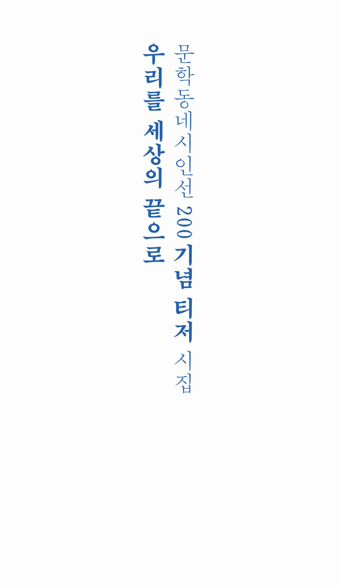 Un monde où ni les poètes ni les lecteurs ne peuvent plus supporter la souffrance, et où la seule souffrance réside dans l'inquiétude face à un tel monde. — Shin Hyeong-cheol, membre du comité d'organisation de la sélection poétique de Munhakdongne, extrait de « Nous jusqu'au bout du monde » (Préface)
