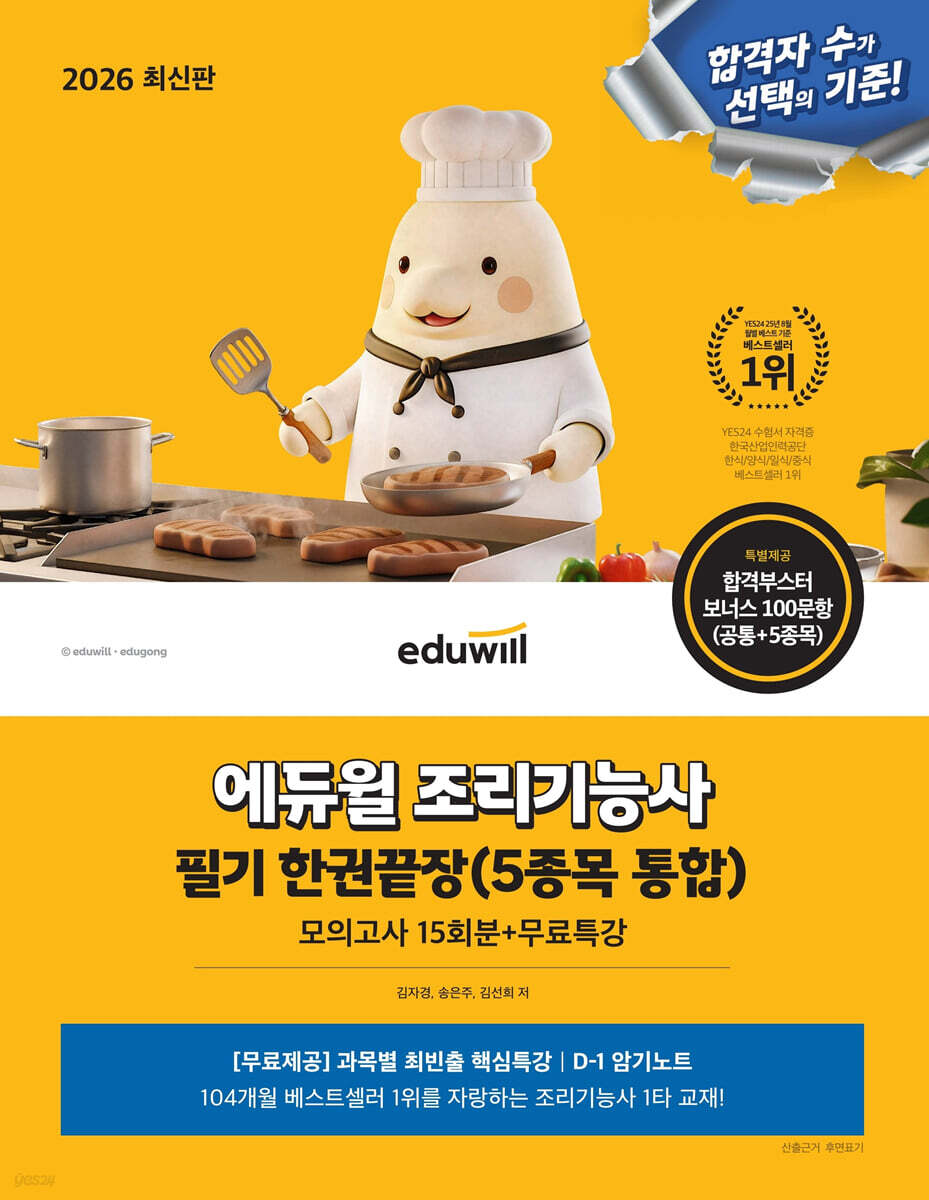Examen écrit de technicien culinaire Eduwill 2026 (5 matières intégrées) : 15 examens blancs