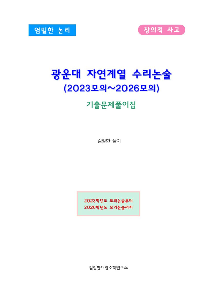 Ce manuel couvre toutes les questions de dissertation en mathématiques et en sciences des mathématiques, ainsi que les dissertations simulées administrées par le Département des sciences naturelles de l'Université Kwangwoon, des dissertations simulées de 2023 aux dissertations simulées de 2026.