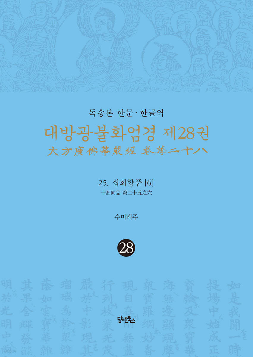 Volume 28, 25 du 『Daebanggwangbulhwaeomgyeong, traductions chinoises et coréennes du Dokseongbon』, un livre sur la pratique du Sutra Avatamsaka compilé par le Vénérable Haeju, un érudit de premier plan du Sutra Avatamsaka et le prêtre principal du temple Sumijongsa à Séoul, pour aider les bouddhistes à pratiquer leur foi.