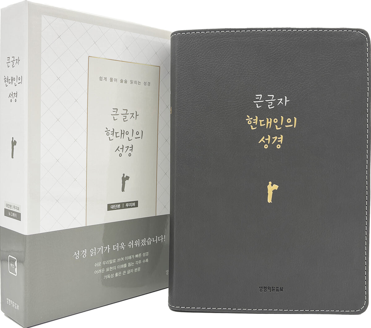 Bible moderne à gros caractères (Grand format, format unique, couverture en croissant, en PU, sans fermeture éclair, gris neuf)