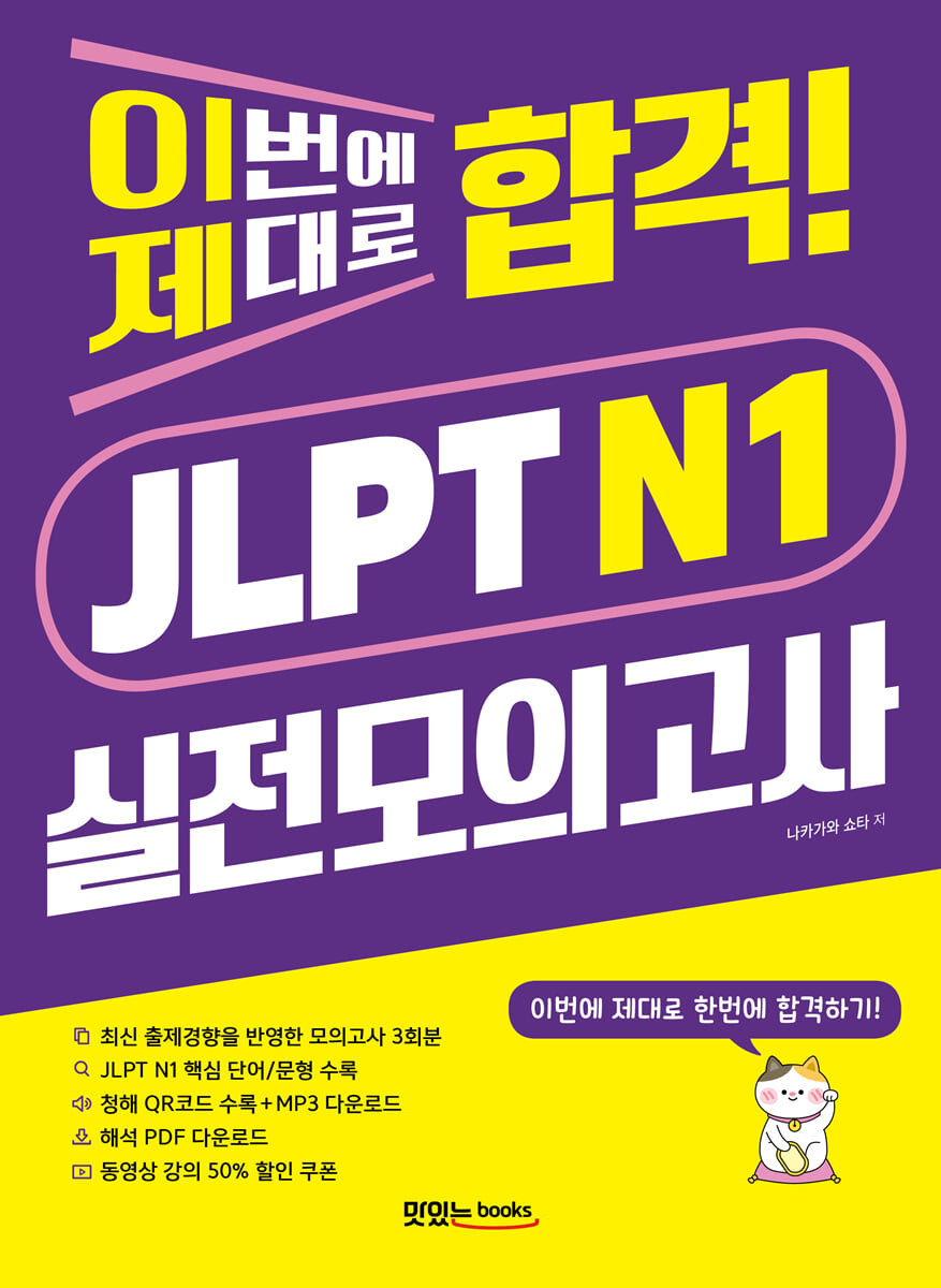 De plus, nous fournissons un PDF d'interprétation gratuit qui vous permet de vérifier l'interprétation et les mots clés de tous les problèmes, et nous fournissons en annexe les adverbes clés du JLPT N1 pour obtenir un score parfait et les modèles de phrases clés du JLPT N1 que vous devez connaître.