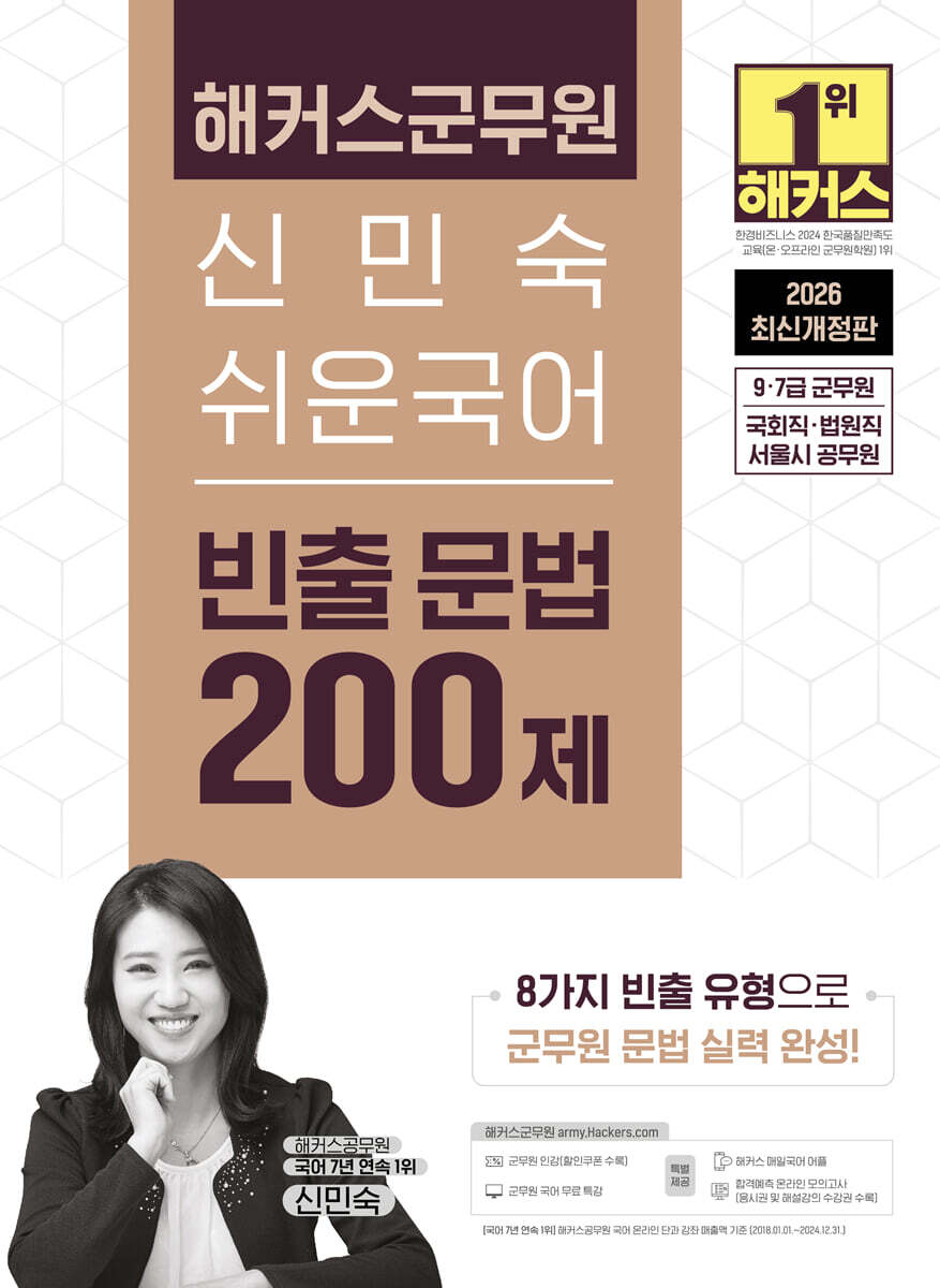 2026 Hackers Personnel Militaire Shin Min-sook Grammaire Coréenne Facile 200 Questions (Niveau 9/7 Personnel Militaire)