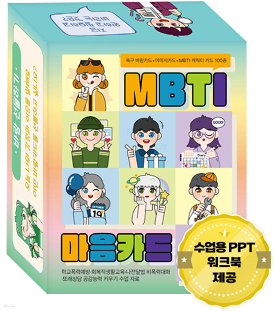 Les 100 cartes MBTI Mind sont un outil de conversation qui vous aide à trouver la « carte vent » dont vous avez besoin en ce moment, à gérer les émotions difficiles et à faire preuve d'empathie les uns envers les autres. N'importe qui peut facilement apprendre l'éducation du caractère grâce à des vidéos, des cartes d'images et des cartes de personnalité MBTI liées aux désirs. Nous proposons des vidéos en ligne, des présentations PowerPoint et des fiches d'activités à utiliser dans le cadre de la prévention de la violence scolaire, de l'éducation à la vie restaurative et des séances de conseil. - Salle de données https://cafe.naver.com/jobcard/2465 |