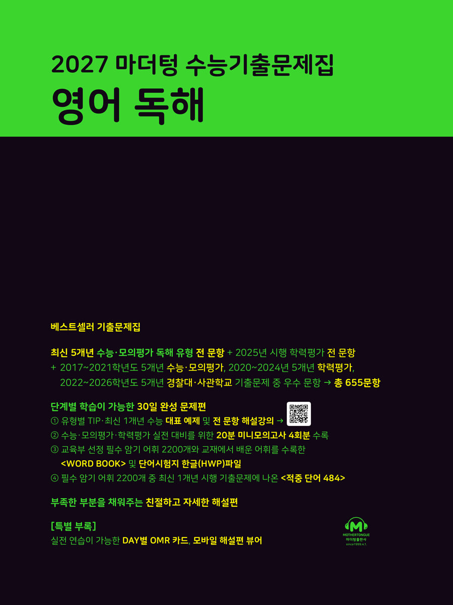 2027 마더텅 수능기출문제집 영어 독해 (2026년)