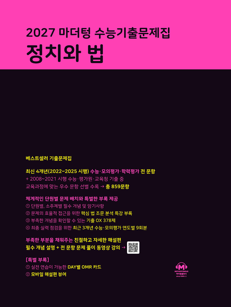 2027 마더텅 수능기출문제집 정치와 법은